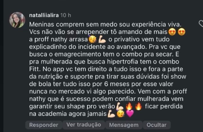 AVISO LEGAL: Este produto não garante resultados específicos. Os resultados podem variar de pessoa para pessoa, de acordo com fatores individuais como rotina, alimentação, frequência de treinos e comprometimento.